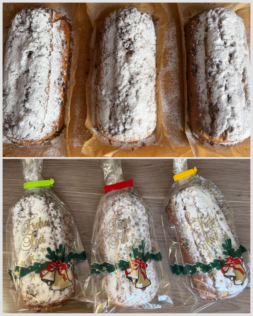 Neun Stollen haben wir gebacken, zuerst waren des sechs und dann merkten wir schnell, dass der Vorrat zu schnell schwindet und wir Nachschub brauchen.